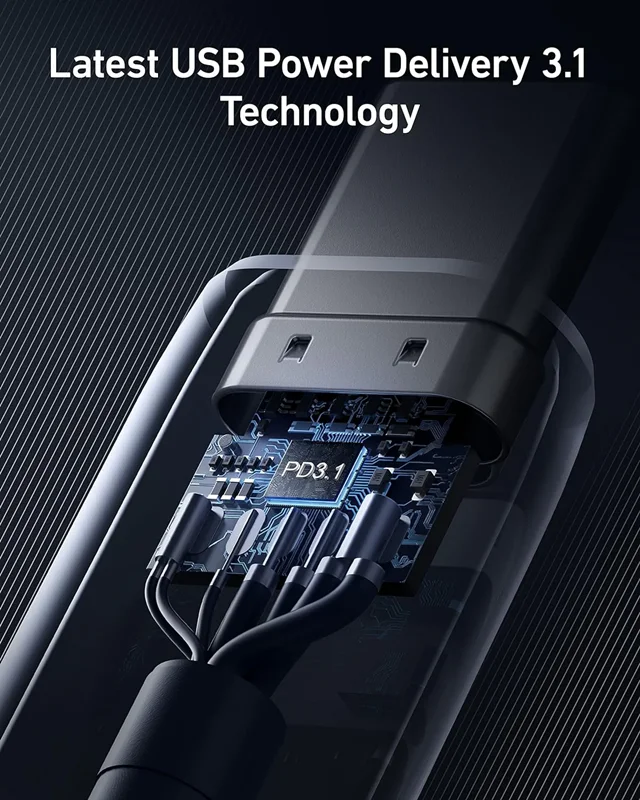 - شارژ فوق سریع: با پشتیبانی از توان خروجی حداکثر ۱۴۰ وات و سازگاری با USB Power Delivery 3.1، این کابل امکان شارژ سریع دستگاههای مختلف از جمله گوشیهای هوشمند، تبلتها و لپتاپها را فراهم میکند.