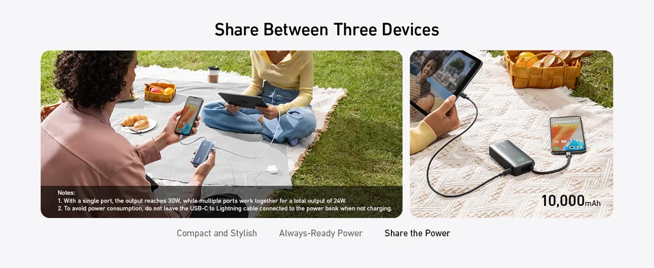 - شارژ دوطرفه 30 وات: قابلیت شارژ و شارژ مجدد با توان 30 وات، امکان شارژ سریع دستگاهها و خود پاوربانک را فراهم میکند.