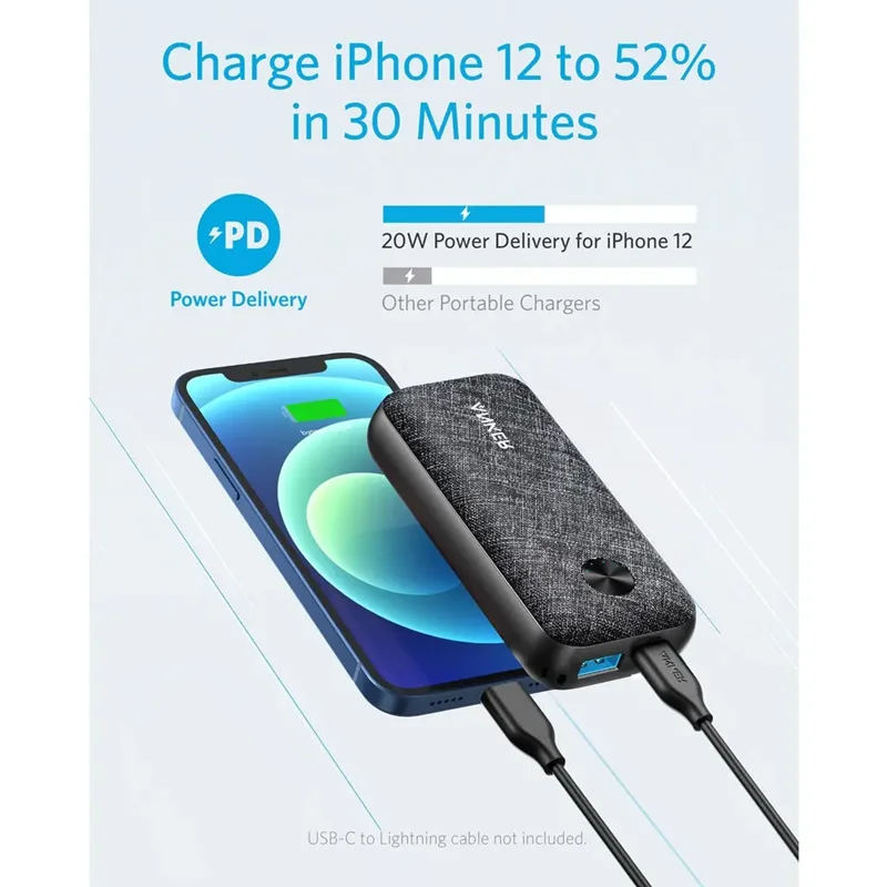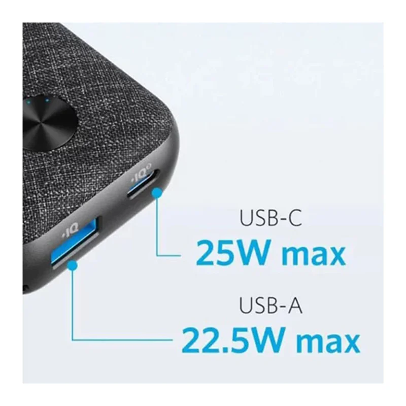 این پاوربانک با پشتیبانی از فناوریهای شارژ سریع PD و PowerIQ، امکان شارژ سریع دستگاههای مختلف را فراهم میکند. بهعنوان مثال، میتواند آیفون ۱۲ را در مدت ۳۰ دقیقه تا ۵۲٪ شارژ کند. همچنین، پورت USB-C با خروجی حداکثر ۲۵ وات و پورت USB-A با خروجی حداکثر ۲۲٫۵ وات، انعطافپذیری بالایی را برای شارژ دستگاههای مختلف ارائه میدهند.