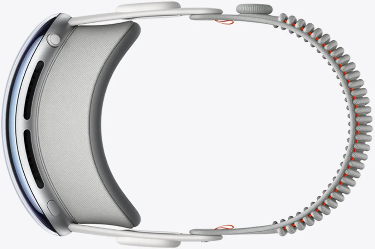 بدنه آلومینیومی هدست ویژن پرو به گونهای طراحی شده تا هیچ فشاری بر صورت وارد نکند. همچنین هیچ نوری به داخل فریم شیشهای وارد نشده و تجربه کاربر تحت تاثیر قرار نمیگیرد. روی محصول جدید اپل یک دایره چرخان دقیقا مانند اپل واچ دیده میشود که به شما کمک میکند به صفحه اصلی بازگردید و یا میزان غرق شدن در این هدست را مشخص کنید.