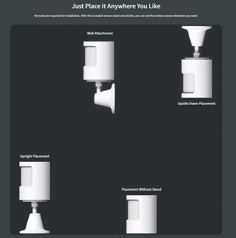حسگر با طراحی کوچک و سبک، مناسب برای نصب در هر مکانی است، از جمله دیوار، سقف یا پایههای مختلف.