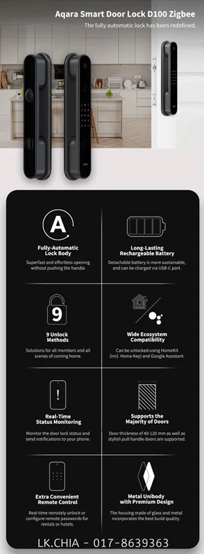 دستگیره هوشمند آکارا مدل D100 Zigbee یک شاهکار در طراحی قفلهای هوشمند است که امنیت، زیبایی و فناوری را در یک محصول ترکیب میکند. این دستگیره با پشتیبانی از پروتکلهای پیشرفته ارتباطی و امکانات منحصر به فرد، امنیت خانه یا محل کار شما را به سطح جدیدی ارتقا میدهد.