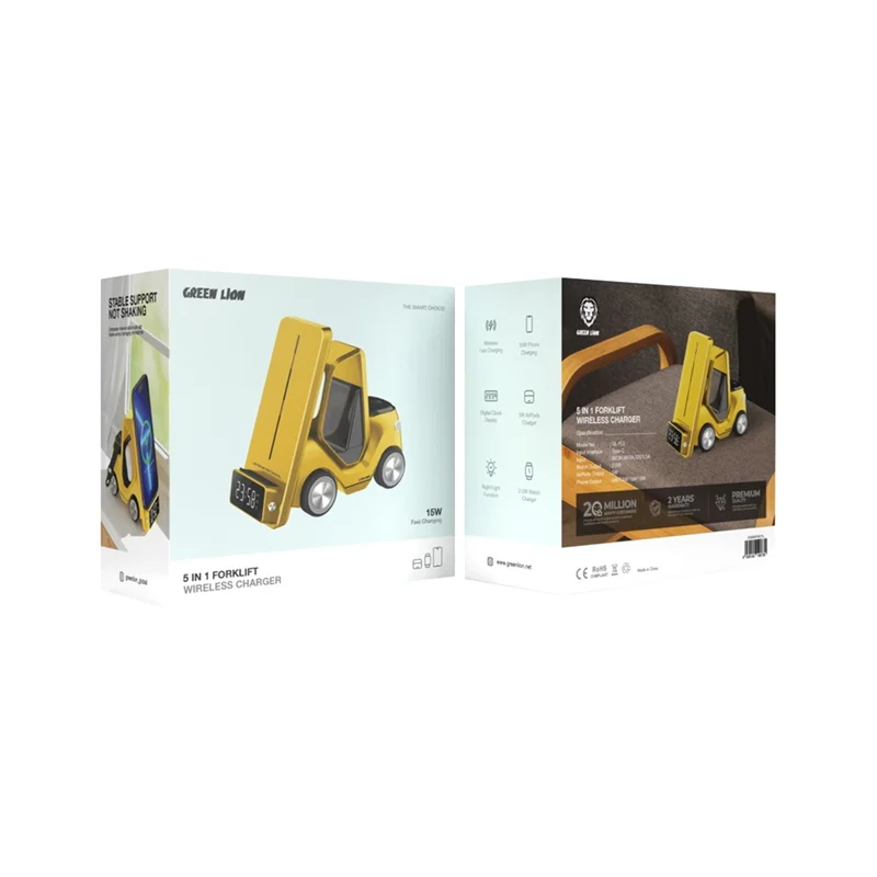 شارژر بیسیم Green Lion Forklift 5-in-1 یکی از محصولات نوآورانه و کارآمد در زمینه شارژ چندمنظوره است که علاوه بر عملکرد فوقالعاده، طراحی منحصربهفردی نیز دارد. این دستگاه با قابلیت شارژ همزمان گوشی هوشمند، ساعت هوشمند و هدفون بیسیم، گزینهای عالی برای افرادی است که به دنبال راهحلی کامل و شیک برای مدیریت دستگاههای خود هستند.