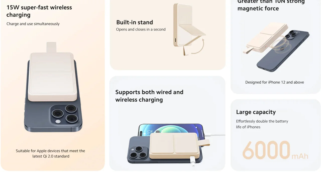 پاور بانک مغناطیسی شیائومی با ظرفیت ۶۰۰۰ میلیآمپر ساعت، یک راهکار کارآمد برای شارژ بیسیم دستگاههای الکترونیکی است. این پاور بانک با طراحی مغناطیسی و قابلیتهای متنوع، تجربهای راحت و کارآمد را برای کاربران فراهم میکند.