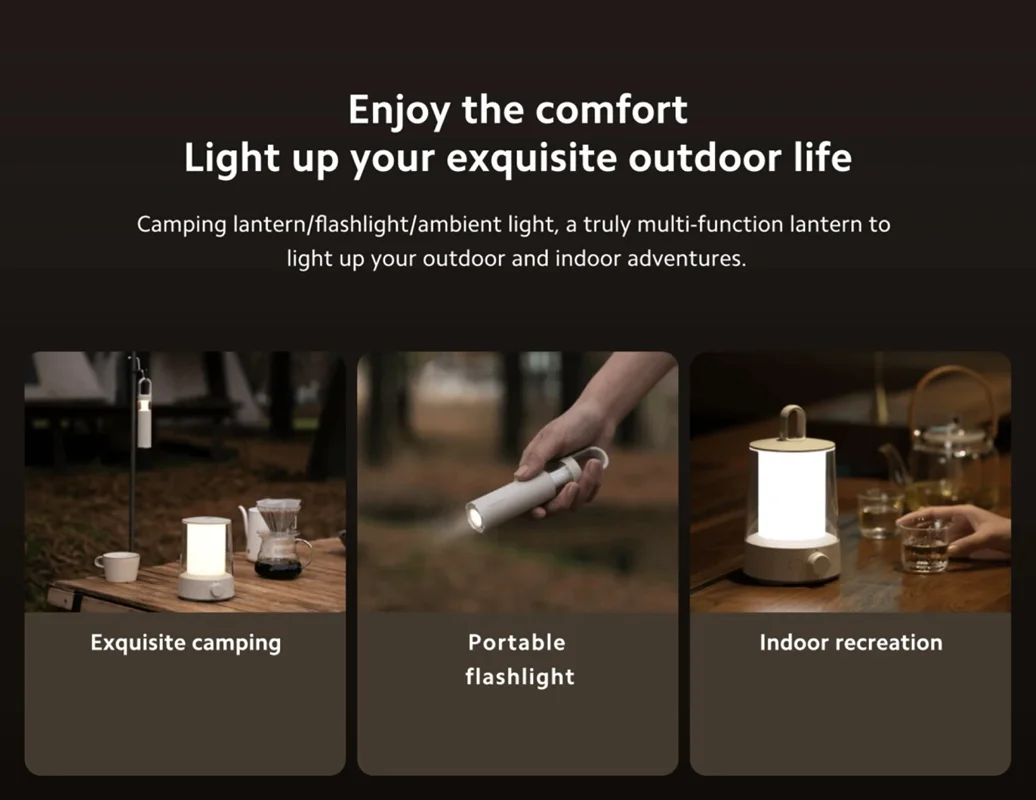 فانوس چندکاره کمپینگ شیائومی Multi-function Camping Lantern سیستم روشنایی و دمای رنگ قابل تنظیم و امکان سفارشی سازی شخصی را فراهم می کند. می توانید به راحتی به برنامه Mi Home یا برنامه Xiaomi Home متصل شوید تا سناریوها را سفارشی کنید و رنگ ها را مطابق با ترجیحات خود تغییر دهید. و به لطف این امکان، فانوس چندکاره شیائومی از طریق دستیار هوشمند XiaoAI با دستورات صوتی به زبان چینی قابل پشتیبانی است.