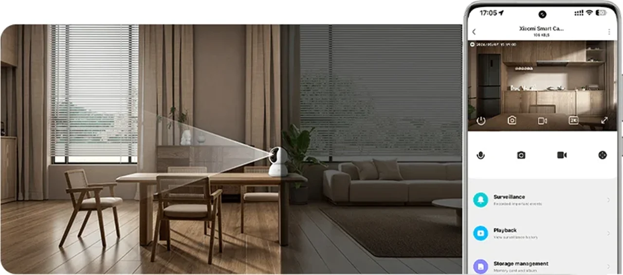 از طریق اپلیکیشن Mi Home میتوانید زاویه دید دوربین را تنظیم کرده یا تصاویر را زنده مشاهده کنید.